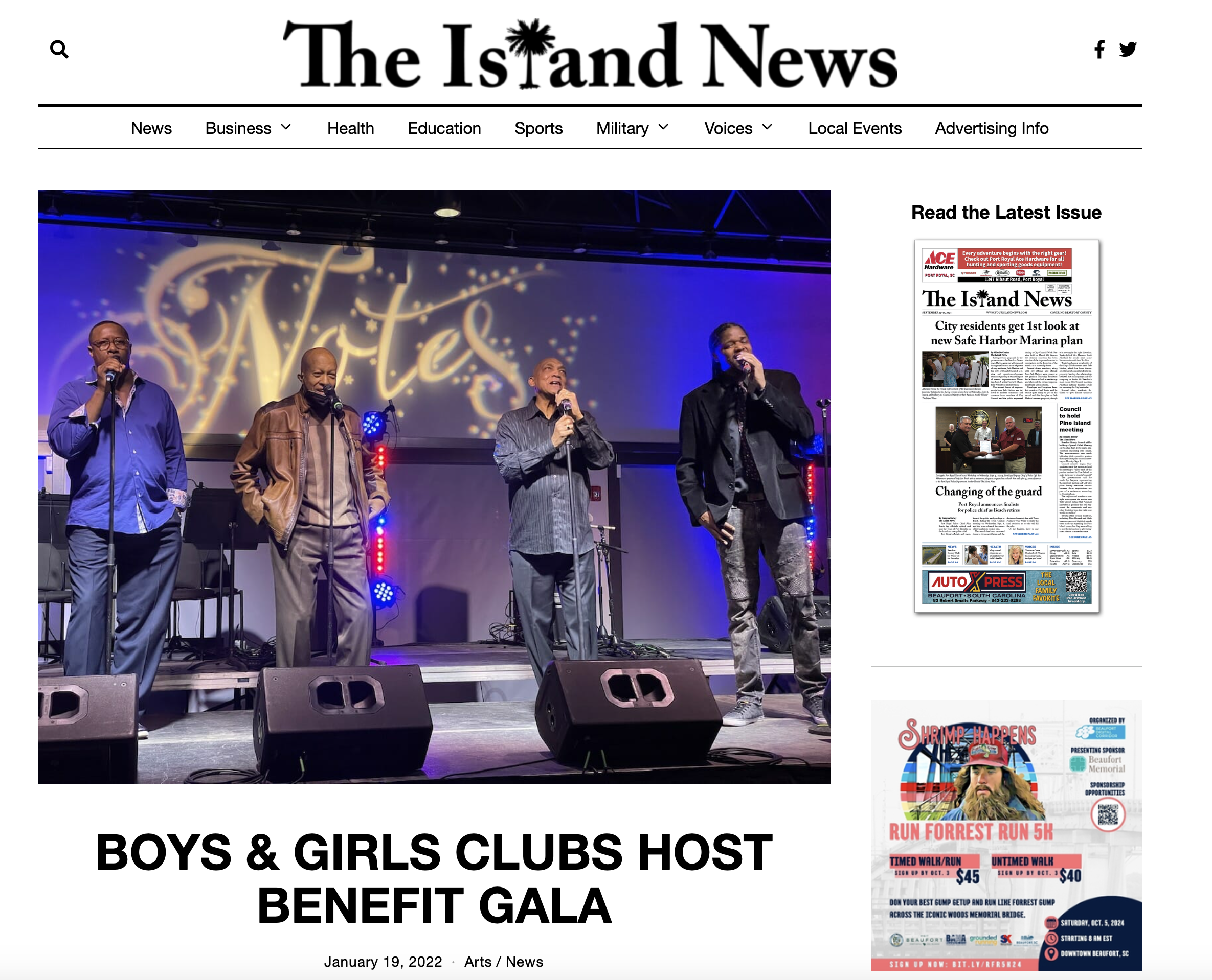 The Boys & Girls Clubs of Northern Beaufort County hosted their fifth annual fundraising gala, “Notes: An Evening of Musical Storytelling & Casual Conversation,” on Friday, Jan. 14 at Tabby Place. The event’s featured performers, seen here, rehearsed at a pre-party for special guests on Thursday night. L-R: Theo Peoples, Joe Blunt, and Joe Coleman – the Voices of Classic Soul – joined Laundau Eugene Murphy, Jr., 2011 winner of America’s Got Talent, to perform classics from the American Songbook and Motown for a very appreciative audience both nights. Early figures suggest a record-setting amount was raised to benefit the Boys & Girls Clubs of Northern Beaufort County. Photo by Jeff Evans.